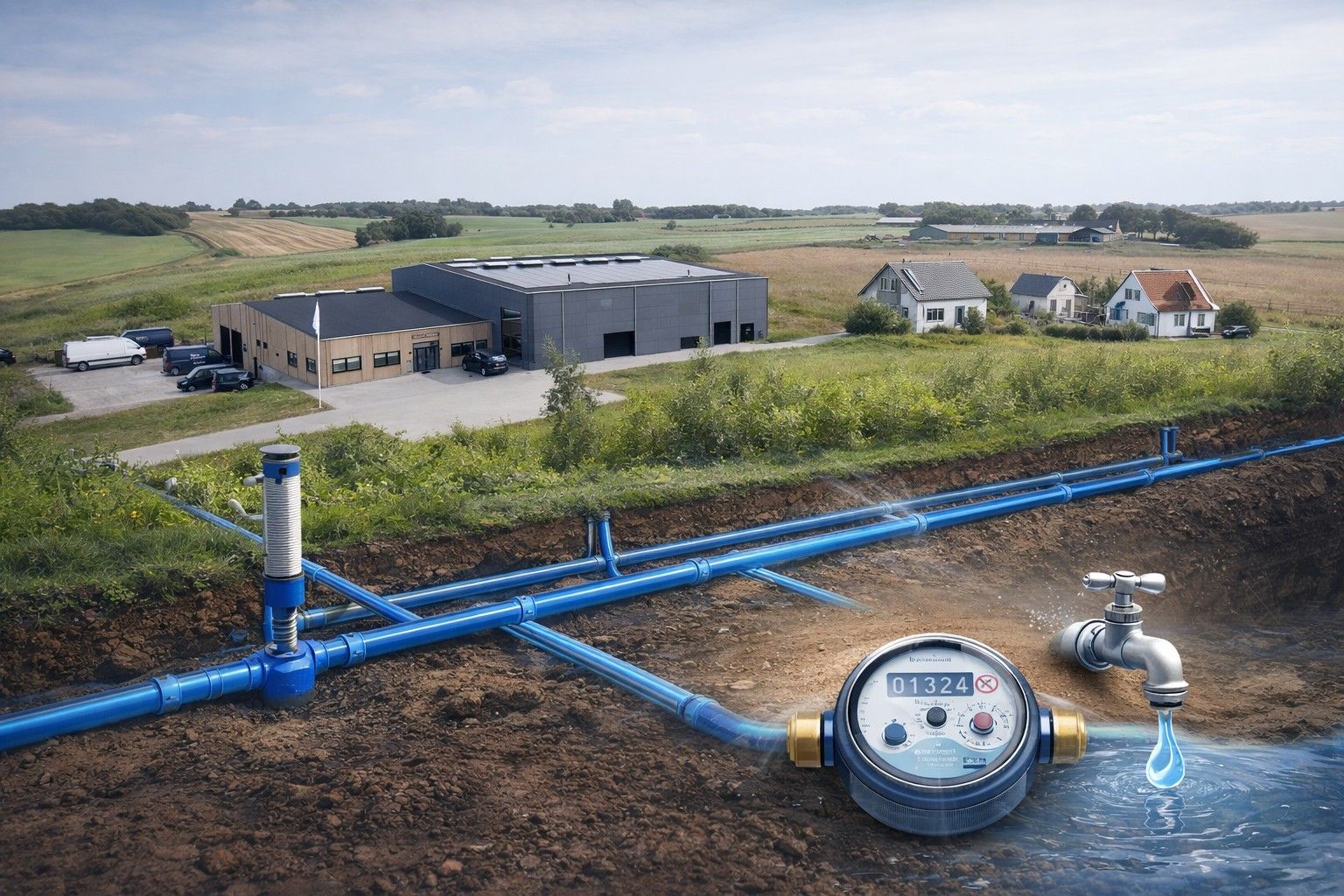 For at sikre denne forsyning driver og vedligeholder vi et omfattende ledningsnet på cirka 215 km, som forbinder boringer, vandværk og forbrugere i hele området.